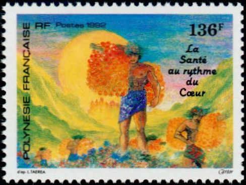 136f., multicolore Y&T N°408 Emis en 1992 "La santé au rythme du coeur" |