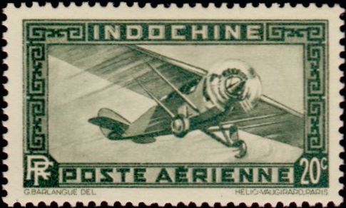 20c., vert-gris Y&T N°PA6 Issued on 1933 Poste Aérienne |