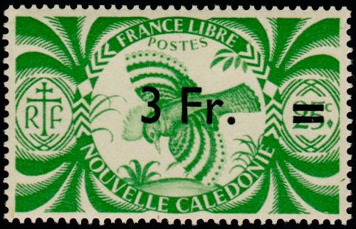 3f., sur 25c. vert-jaune Y&T N°254 Emis en 1945 T.-Poste de 1943 surchargé |