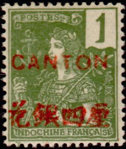 1c., vert-olive foncé Y&T N°33 Emis en 1906 T.-Poste d'Indochine 1892-1904 surchargé |