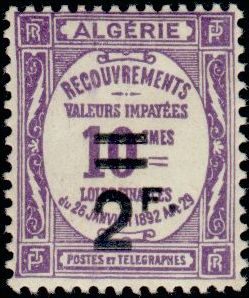 2f., sur 10 c. violet Y&T N°TA24 Emis en 1926 Timbre Taxe |