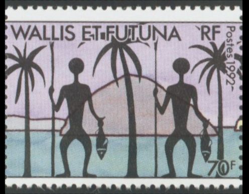 70f., multicolore Y&T N°435 emitida el 1992 Vues des îles. Silhouettes d'indigènes |