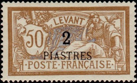 2pi., sur 50c. brun et gris Y&T N°20 Emis en 1902 Type des T.-Poste de France de 1900 |