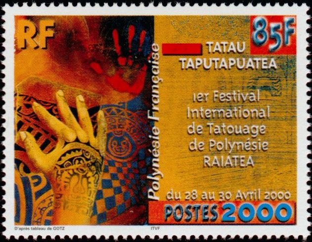 85f., multicolore Y&T N°614 Emis en 2000 1er Festival international de Tatouages de Polynésie, à Raiatea |