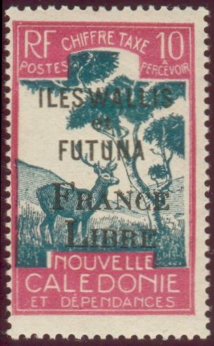 10c., rose-lilas et bleu-vert Y&T N°TA27 Emis en 1943 Timbre Taxe T.-Taxe de 1930 surchargé "France Libre" |