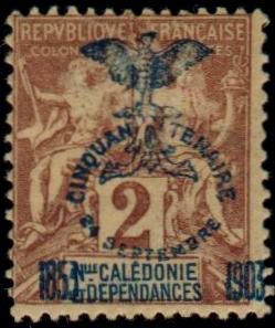 2c., lilas-brun sur paille Y&T N°68 Emis en 1903 Cinquantenaire de la présence française. T.-P de 1892-1900 surchargé |