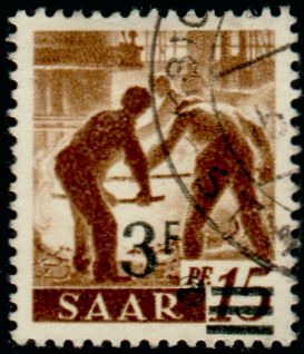 3f. sur 15p., marron Y&T N°220 Emis en 1947 Série précédente avec valeur en francs en surcharge |