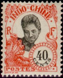 40c., rouge sur azuré Y&T N°114 Emis en 1922 Type de 1907 valeur en piastres |