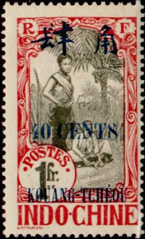 40c., sur 1f rose Y&T N°48 Emis en 1919 T.-Poste d'Indochine de 1919 surchargé, femmes d'Indochine |