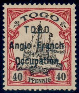 40pf., carmin et noir (Type I) Y&T N°38A Emis en 1914 T.-Poste de 1900-14 surchargé "Anglo-French Occupation" |
