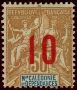 10c., sur 50c. bistre et bleu sur azuré Y&T N°109 Emis en 1912 T.-Poste de 1892-1900 surchargé |