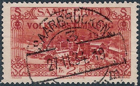2f., rouge-brique Y&T N°185 Emis en 1934 Timbre de 1925-34 surchargé "VOLKSABSTIMMUNG 1935" |