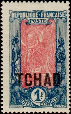 1f., bleu et rose Y&T N°16 Emis en 1922 T.-Poste du Congo de 1907-17 surchargé |