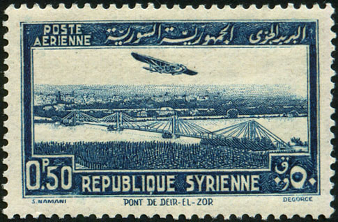 0.50pi., bleu-vert Y&T N°PA88 Emis en 1940 Poste Aérienne Pont de Deir el Zor |