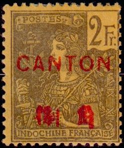 2f., violet sur jaune Y&T N°47 Emis en 1906 T.-Poste d'Indochine 1892-1904 surchargé |