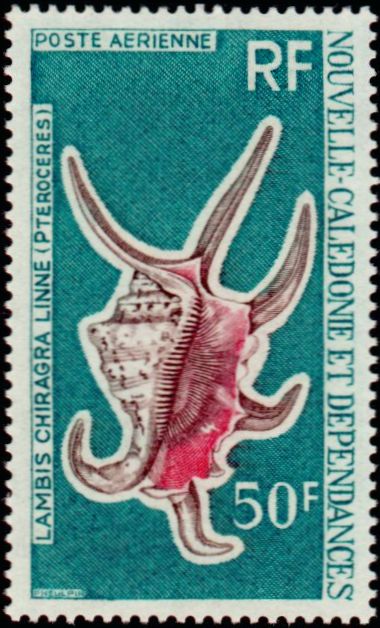 50f., émeraude, brun-violet et carmin Y&T N°PA130 Emis en 1972 Coquillages |
