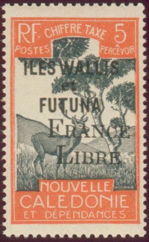 5c., rouge-orange et gris foncé Y&T N°TA26 Emis en 1943 Timbre Taxe T.-Taxe de 1930 surchargé "France Libre" |