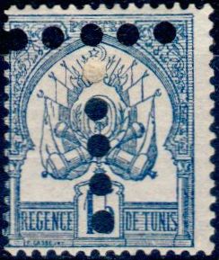 15c., bleu sur gris Y&T N°TA4 Emis en 1897 Timbre Taxe T.-Poste de 1888-93 perforé en T. |