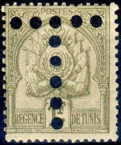 1f., vert-olive Y&T N°TA20 Emis en 1888 Timbre Taxe T.-Poste de 1888-93 perforé en T. |