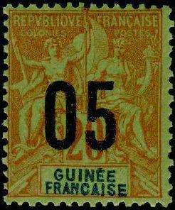 5c., sur 20c. brique sur vert Y&T N°51 Emis en 1912 T.-Poste de 1892 et 1904 surchargé |