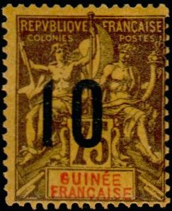 10c., sur 75c. violet sur jaune Y&T N°54 Emis en 1912 T.-Poste de 1892 et 1904 surchargé |