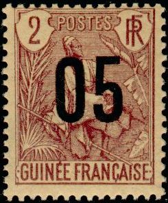 5c., sur 2c. lilas-brun sur paille Y&T N°55 Emis en 1912 T.-Poste de 1892 et 1904 surchargé |