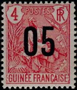 5c., sur 4c. carmin sur azuré Y&T N°56 Emis en 1912 T.-Poste de 1892 et 1904 surchargé |