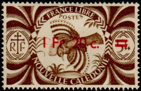 1f.20, sur 5c. sépia Y&T N°252 Emis en 1945 T.-Poste de 1943 surchargé |