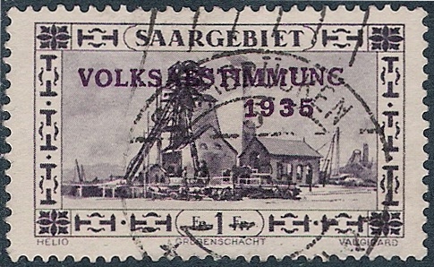 1f., violet Y&T N°183 Emis en 1934 Timbre de 1925-34 surchargé "VOLKSABSTIMMUNG 1935" |