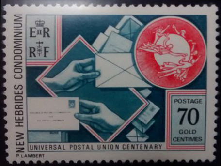 70c., noir, vert-bleu et rose Y&T N°403 Emis en 1974 New Hebrides |