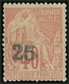 25c., sur 40c. rouge-orange Y&T N°3 Emis en 1889 T.-Poste des Colonies de 1881 surchargé |