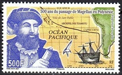 500f., polychrome Y&T N°1259 Emis en 2021 Issu du feuillet "500 ans du passage de Magellan en Polynésie" |