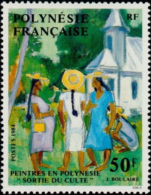 50f., multicolore Y&T N°223 Emis en 1984 Peintres en Polynésie. Tableaux |