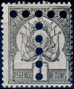 1c., noir sur azuré Y&T N°TA1a Emis en 1897 Timbre Taxe T.-Poste de 1897 perforé en T. |