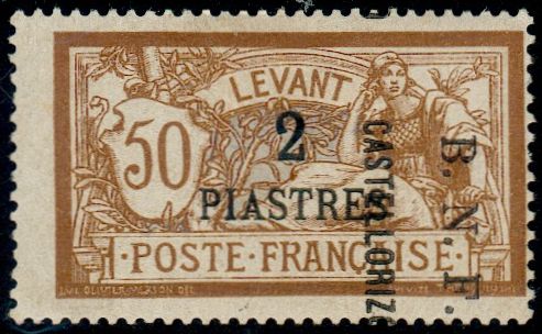 2pi., sur 50c. brun et gris Y&T N°11 Emis en 1920 T.-Poste du Levant de 1902-20 surchargé |