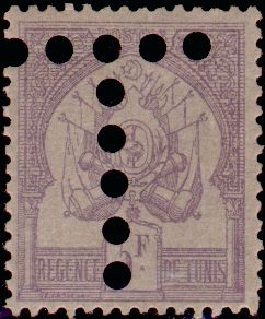 5f., lilas sur lilas pâle Y&T N°TA8 Emis en 1897 Timbre Taxe T.-Poste de 1888-93 perforé en T. |