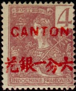 4c., lilas-brun sur gris Y&T N°35 Emis en 1906 T.-Poste d'Indochine 1892-1904 surchargé |