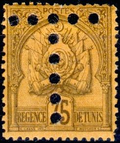 75c., violet-noir sur jaune-orange Y&T N°TA19 Emis en 1888 Timbre Taxe T.-Poste de 1888-93 perforé en T. |