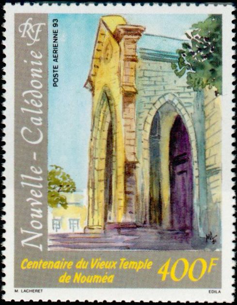 400f., polychrome Y&T N°PA299 Emis en 1993 Centenaire du Vieux Temple de Nouméa |