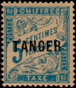5c., bleu Y&T N°TA36 Emis en 1918 Timbre Taxe T.-Taxe de France surchargé "Tanger" |