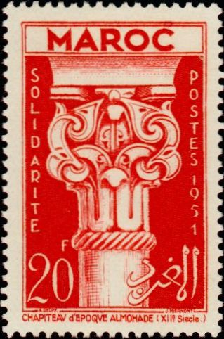 20f., rouge Y&T N°316 Emis en 1952 Campagne de solidarité franco-marocaine. Chapiteaux divers |