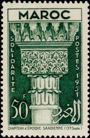 50f., vert Y&T N°318 Emis en 1952 Campagne de solidarité franco-marocaine. Chapiteaux divers |