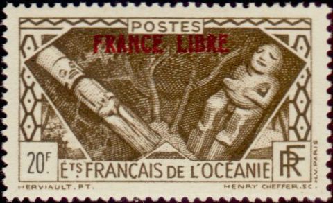 20f., sépia Y&T N°149 Emis en 1941 T.-Poste de 1927-30 et 1934-39 surchargés "France Libre" |