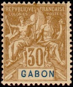 30c., brun Y&T N°24 Emis en 1904 Papier teinté |