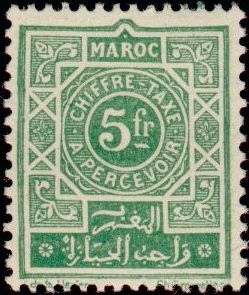 5f., vert-jaune Y&T N°TA51 Emis en 1945 Timbre Taxe Valeur dans un petit cercle |