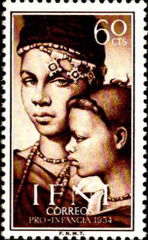 60c., brun Y&T N°91 Issued on 1954 Pour l'enfance indigène |