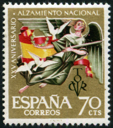 70c., polychrome et or Y&T N°1026 Michel N°1248 emitida el 1961 25ème anniversaire du régime franquiste |