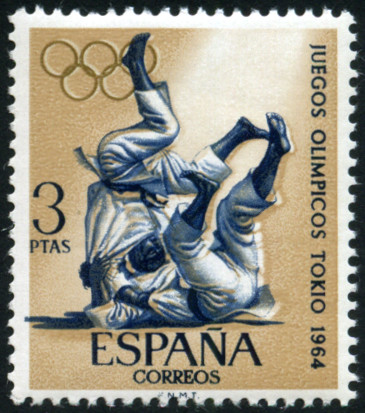3p., chamois, noir et or Y&T N°1282 Michel N°1509 Emis en 1964 Judo |