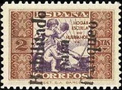 2p., brun et violet Y&T N°593G Emis en 1937 Timbre de Bienfaisance surchargé "Habilitado Para Franqueo" |