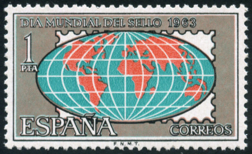 1p., gris, noir, vert et orange Y&T N°1173 Michel N°1397 Issued on 1963 Planisphère sur timbre |